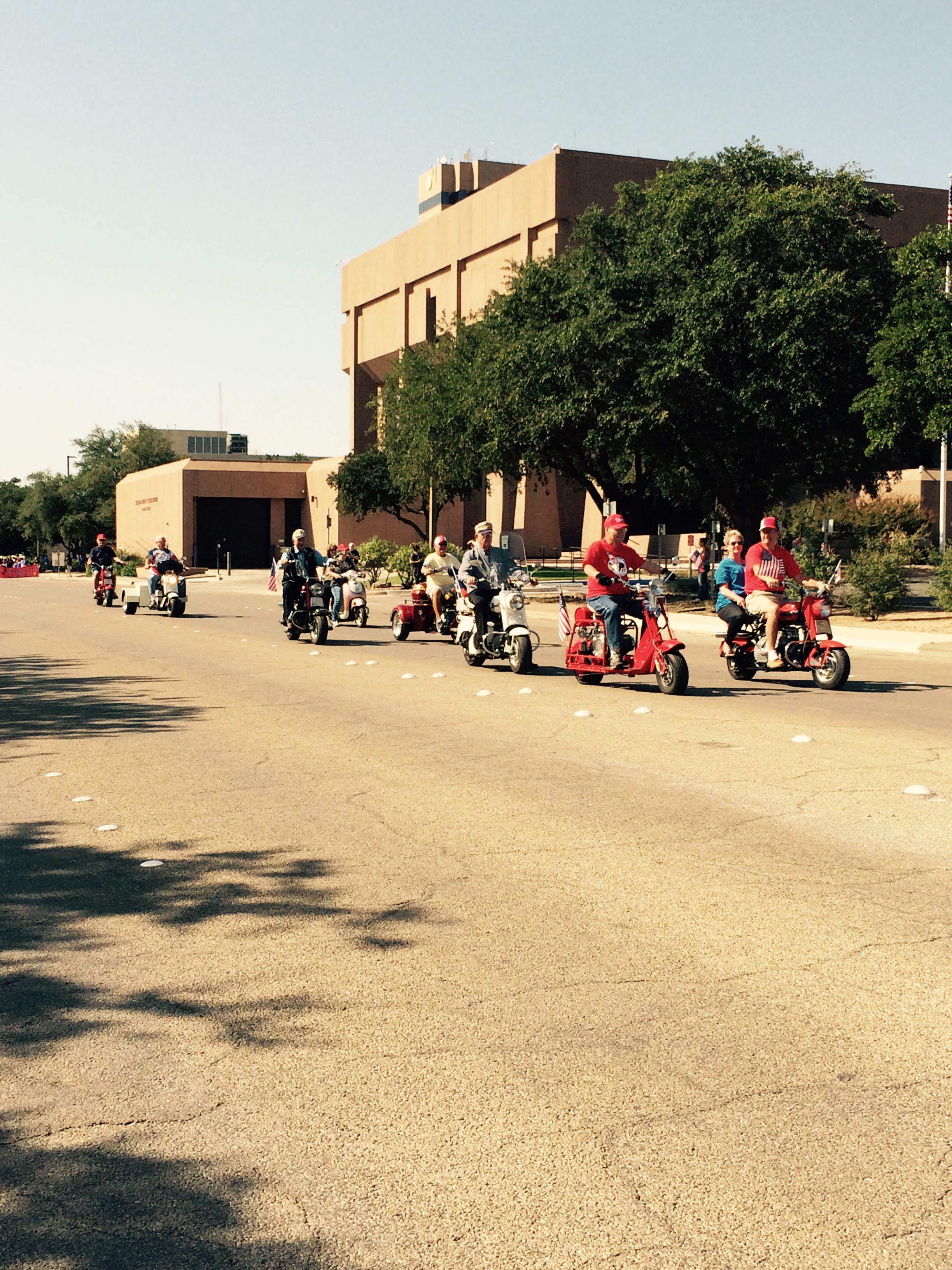 There were several members who come out to ride in this once a year parade. 20 scooters represented the Texas Cushman Club.