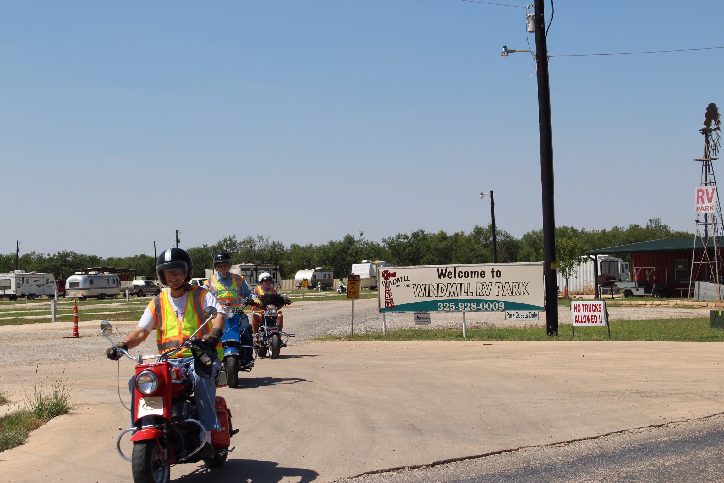 Thursday 13 scooters headed toward Buffalo Gap out of the home base of Windmill RV Park, Merkel, Tx.
