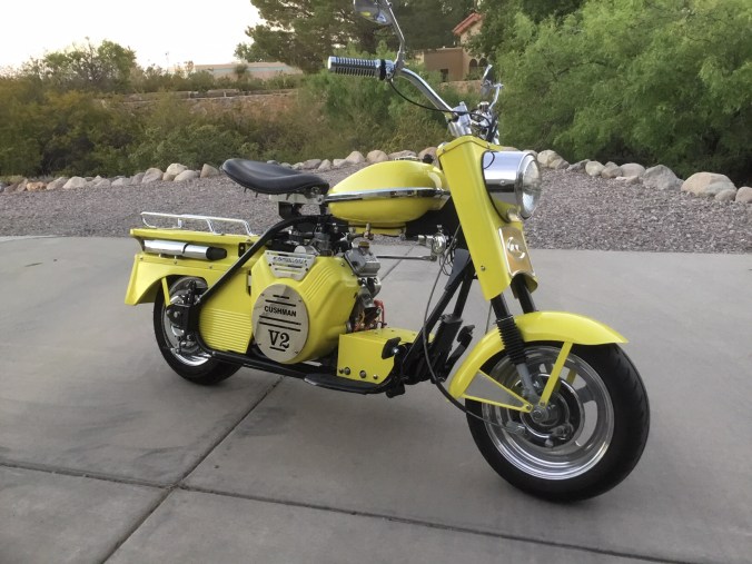 For Sale – 1963 Super Silver Cushman Eagle with 23 hp Vanguard engine and 2 speed rebuilt silver eagle transmission. 1000 miles since built. All parts new except for refurbished silver eagle frame. Scooter was built so that rear box fender can be easily disassembled for maintenance. Engine was mounted so that oil filter was retained as well as oil cooler. Double belted drive belt from engine to transmission for increased reliability. 12 inch Michelin radial tires with polished aluminum spoke wheels and aluminum hubs. Mikuni 34 mm carburetor, leather seat. Scooter can be picked up at Cushman National Meet in Paris, Texas June 9-13, 2019. $6750. Contact Jim Harris cell (575) 642-3109, email jharris4932@gmail.com. TTC 1663