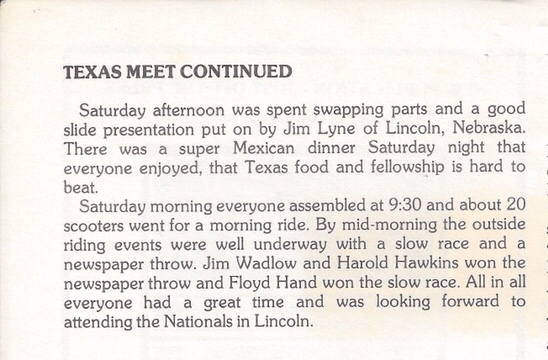 John Hensley had been telling us about an old scooter guy in Merkle and that he had his original scooter. While camping in Mike McLeod’s Windmill RV Campground, we got to meet Mike. He brought a scan of his cap with the patch from the 1st meet of the Texas Cushman Club from 1983. Proof of his membership was not on my current books.