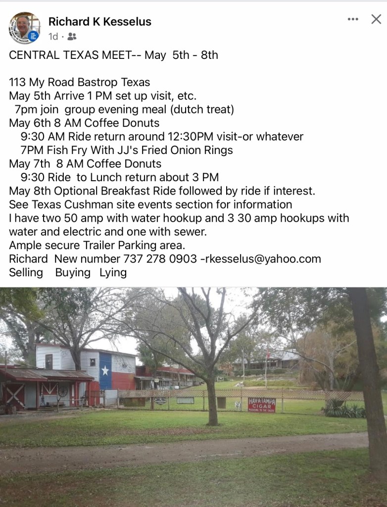 A BIG thank you to Homer Schilling for leading the rides; to Don Henry for coordinating the Ride; to Jerry Krenek for driving chase; John and Barbara Allbright for hosting at their home and to everyone else who came: Don & Ann Reed, James & Jane Press, Michelle (Mick) and RJ Hudson, Ricky, Marlene and Kaile Hudson, Tommy & Debi Goode, Martin Stafford, Ray Powers, Richard & Betty Kesselus, Larry & Ginger Freeze, Paul & Mary Kruska and Tom Roddy (in Memory of Pete Roddy).
