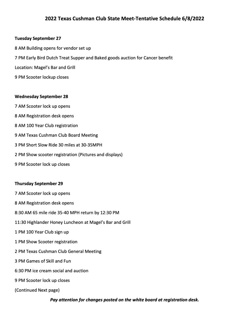 Jack Hadlock called. “Where is Friday on the schedule?” It is missing! I have corrected it on the website and the following includes the Friday schedule.
